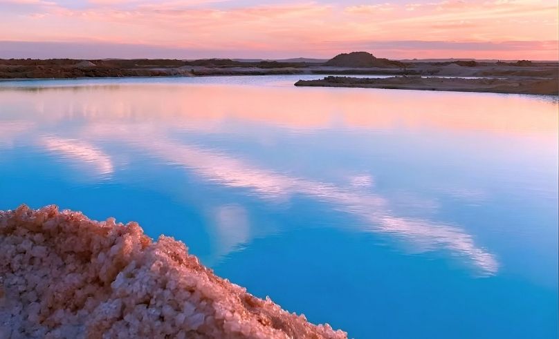 Siwa’s salt lakes don’t stay in one emotional register for long. At noon they look bleached white-blue, like crushed glass. By late afternoon, the minerals catch the sun and turn the water into a soft blush of pink and turquoise streaks.
